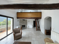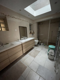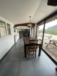 Beau potentiel, maison sur 2 niveaux, sans vis à vis et au calme, elle se compose au RDJ, un appartement type T2 avec un salon:cuisine, une chambre, un wc et une salle de bain, en travaux un studio à terminer. A l'étage, une salle à manger avec cuisine américaine, un salon avec une mezzanine servant de coin bureau, 2 chambres, une salle de douche avec wc, un wc indépendant, une buanderie avec chaudière à mazout avec un accès derrière couvert (mauvais état). A l'extérieur une serre, un abri double (sans permis) et un petit cabanon, une cave .