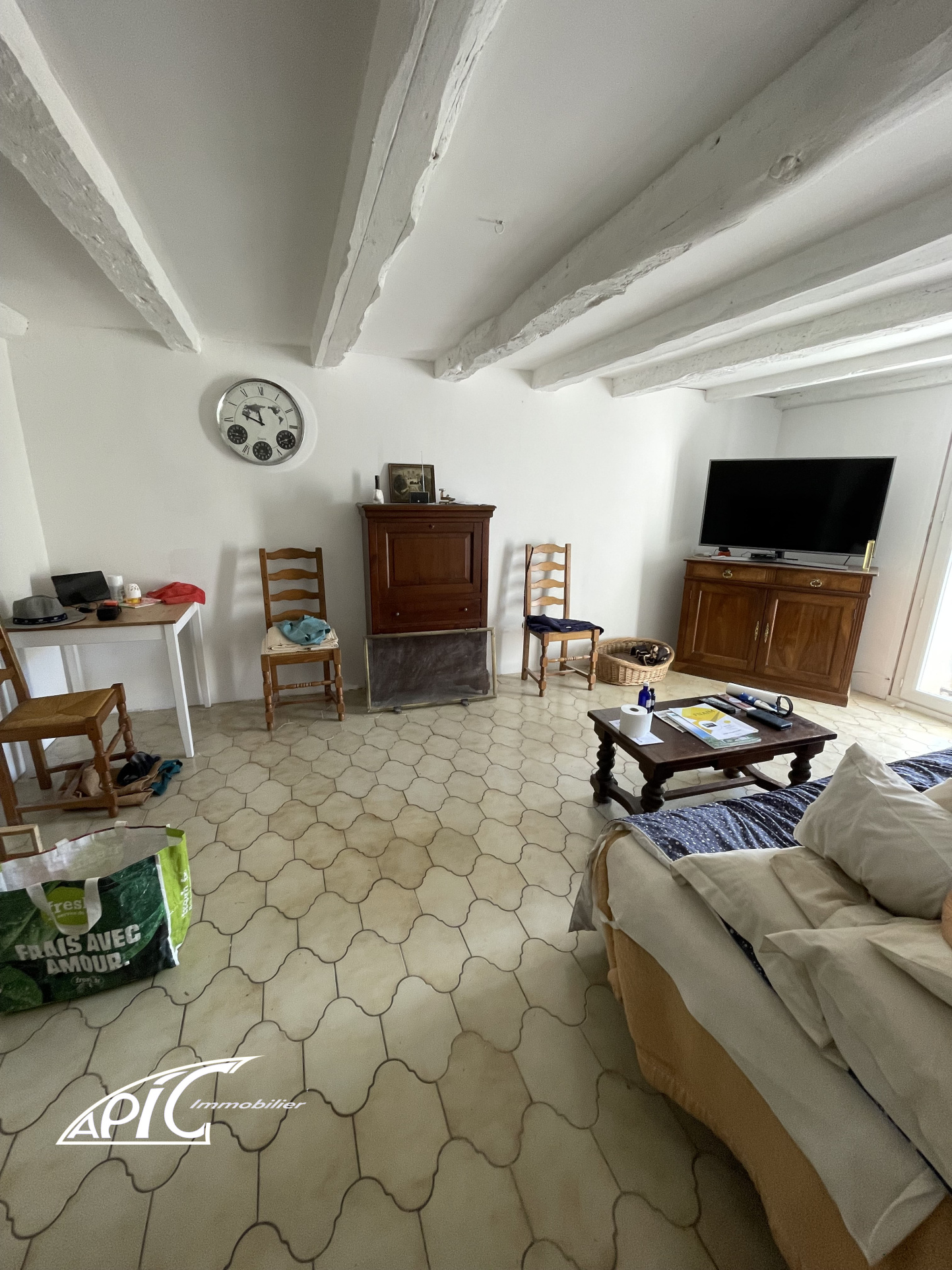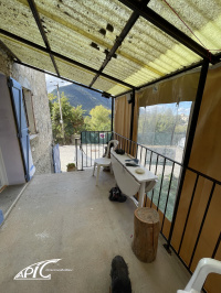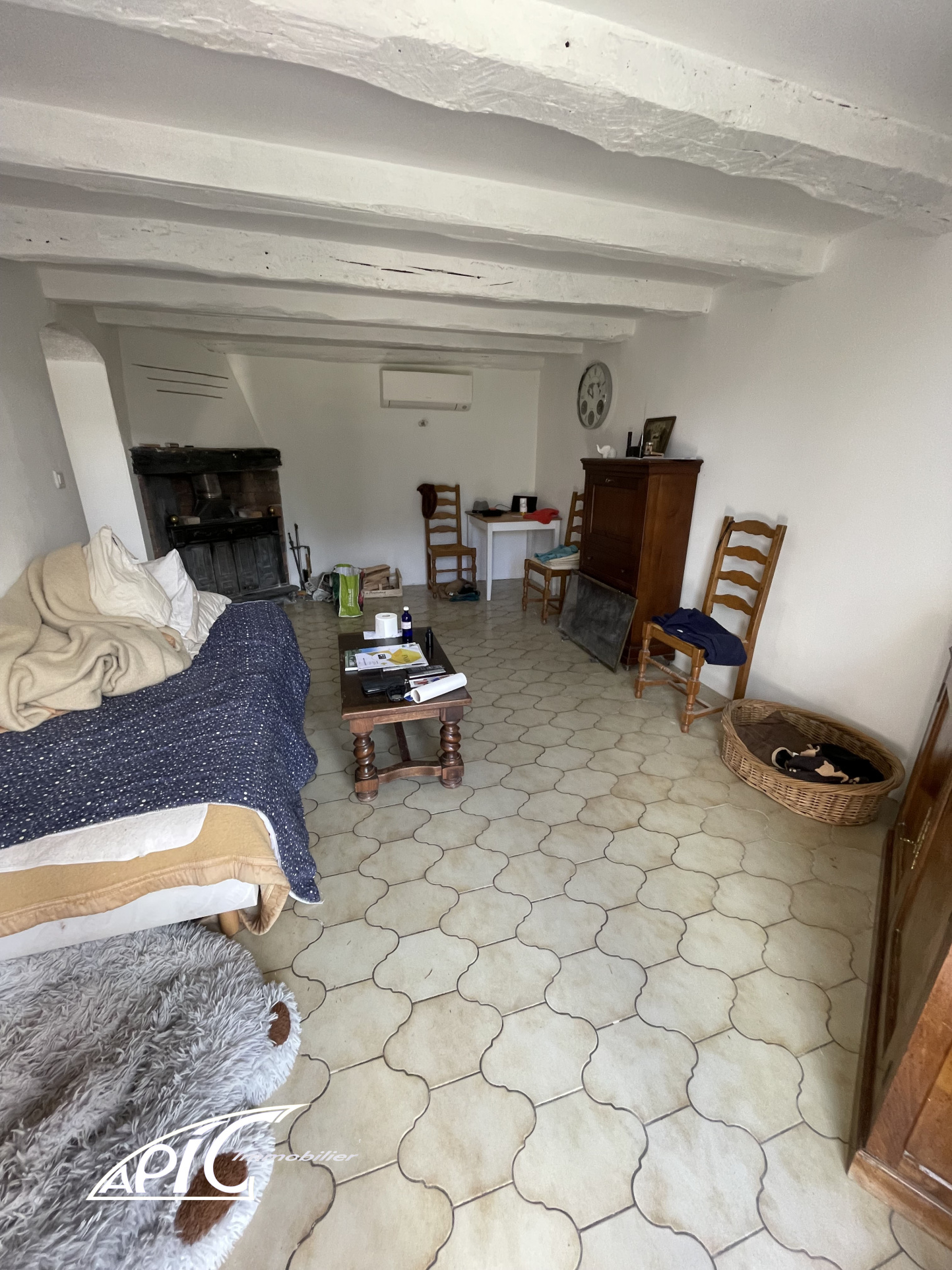 Dans une maison de Village en Pierres un appartement composée de : 1er étage : Une terrasse, une entrée sur un coin cuisine, un salon avec cheinée, une chambre et un wc. Rez-de-Chaussée : une pièce pouvant servir de couchage, une Salle d'eau, Wc indépendant.. (pouvant servir de studio) sortie indépendante Un garage.et attenant à la maison de village un jardinet cloturé. En face une place de stationnement crée, jardinet Double vitrage, pompe à chaleur, Electricité entièrement refaite Travaux de rafraichissement à terminer